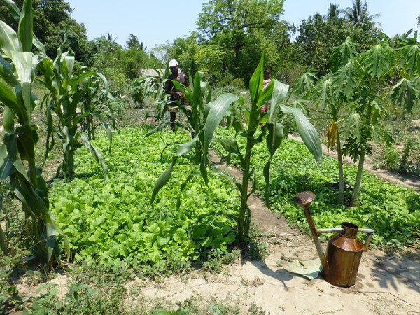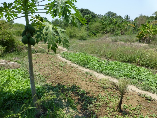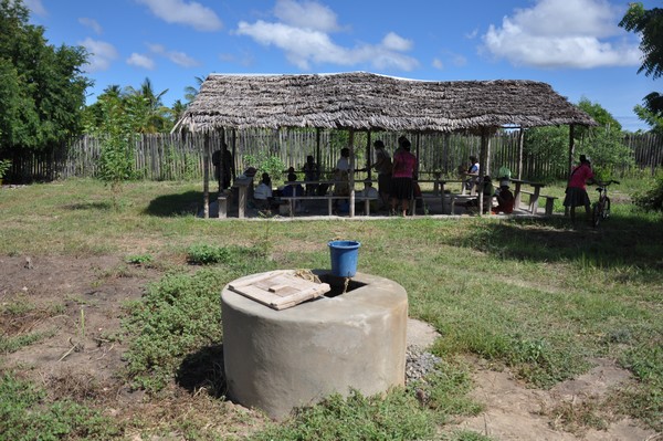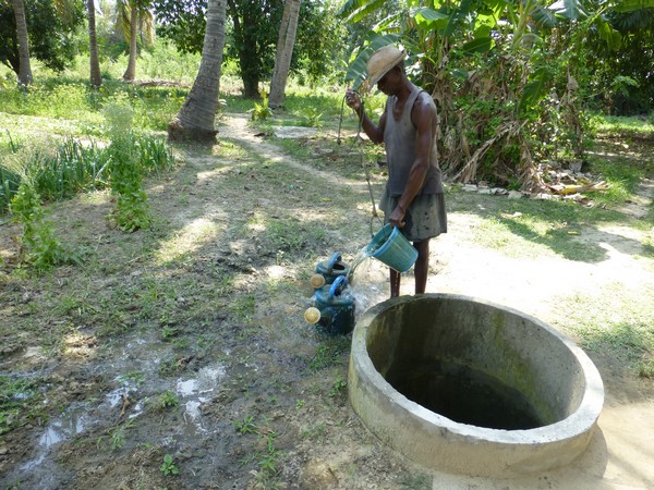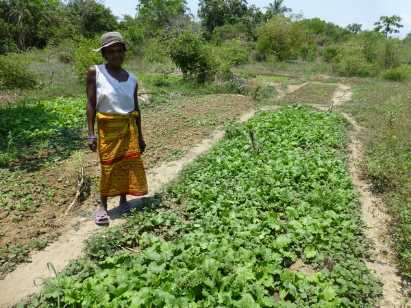 Création de jardins potagers dans l'Ouest de Madagascar. Les puits permettent un arrosage constant et les plantations d'arbres fruitiers permettent de plus, d'ameliorer la diversité et la complémentarité de l'alimentation familiale.